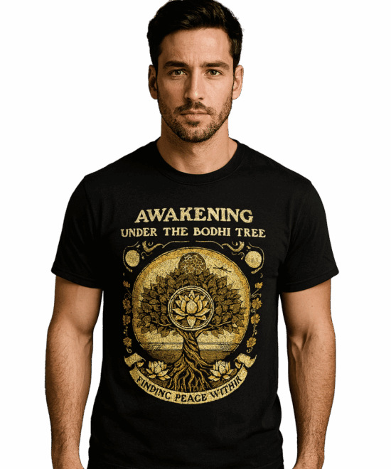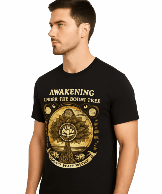 Graphic Print Round Neck Polycotton Black T-Shirt-(Awakening)
