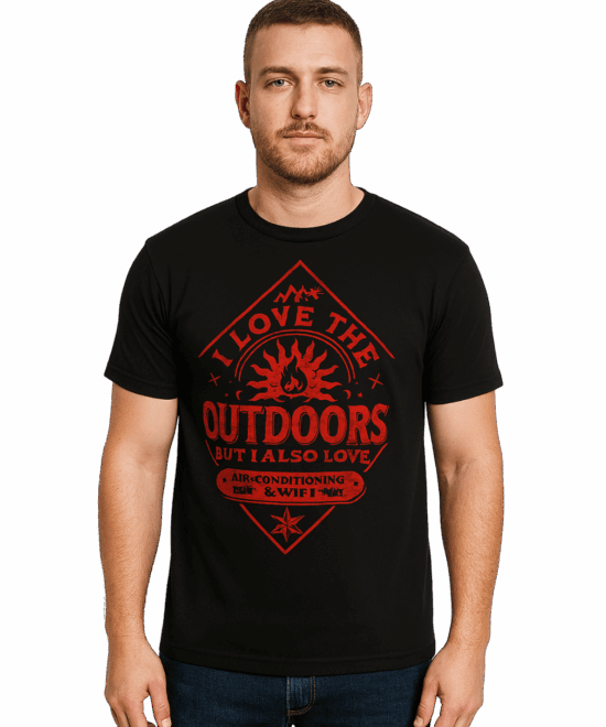 Graphic Print Round Neck Polycotton Black T-Shirt-(Outdoor)