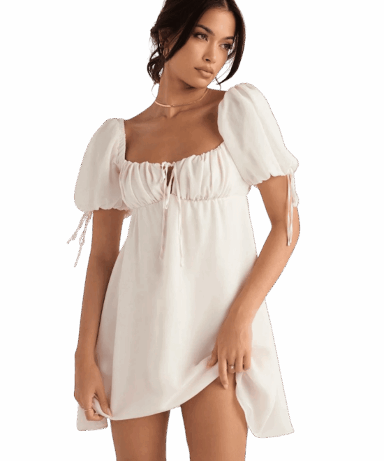 Fit and Flare White Above Knee/Mid Thigh Length Dress (White Dress)