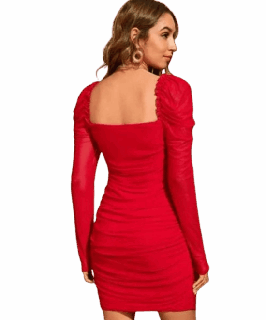 Bodycon Red Knee Length Dress-(Red Dress)
