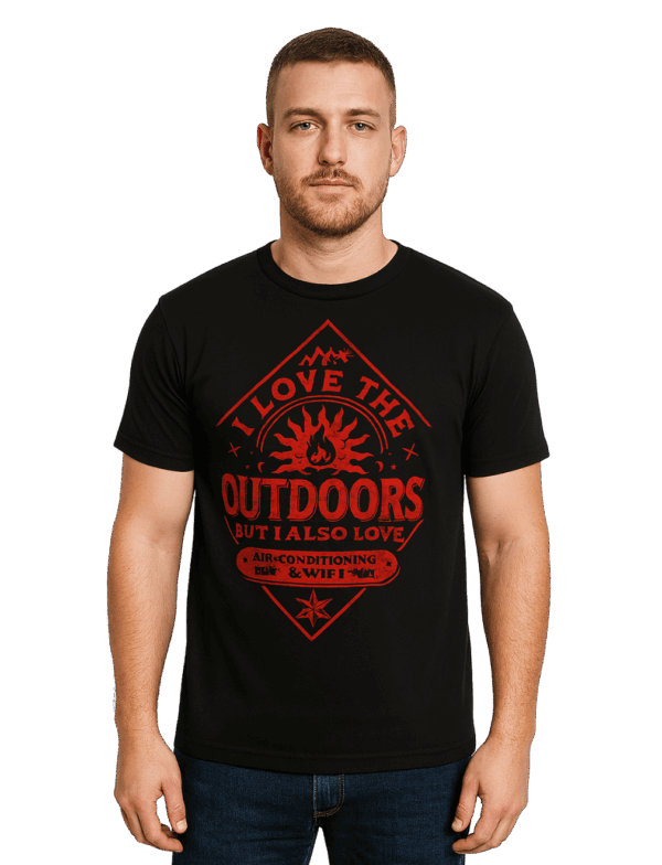 Graphic Print Round Neck Polycotton Black T-Shirt-(Outdoor)